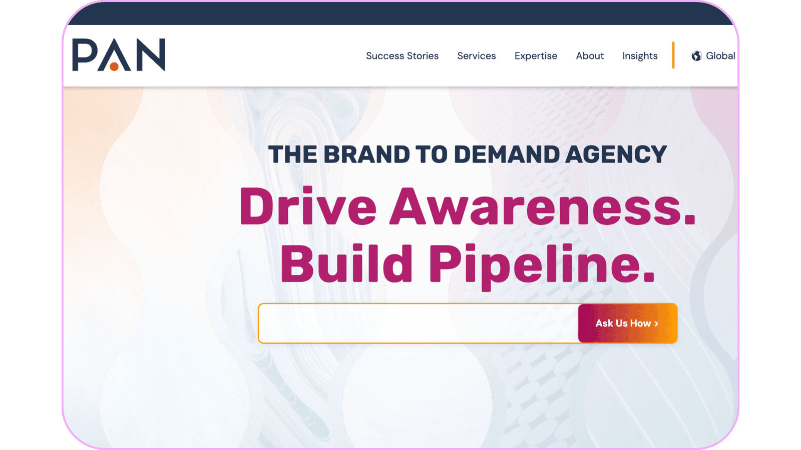 Services: AI optimisation, public relations & awareness, content marketing, creative & branding, demand & lead generation, data & analytics. PAN also offers strategy & planning and thought‑leadership programs.